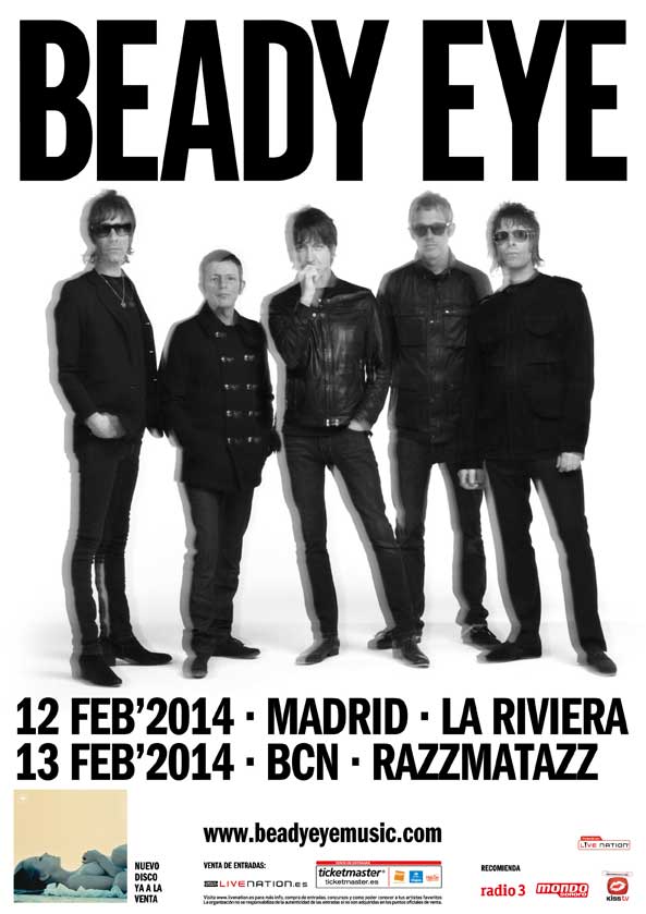 BEADY EYE, grupo de rock británico liderado por el carismático Liam Gallagher y formado por antiguos miembros de Oasis: Gem Archer (ex heavy Stereo) , Andy Bell (ex Ride) y Chris Sharrock (ex The La´s) , vuelven a España y estarán actuando el 12 de febrero en La Riviera de Madrid y el 13 en Razzmatazz de Barcelona.