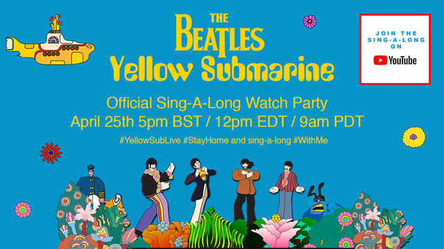 Gracias a YouTube Premieres este sábado 25 de abril a partir de las 18:00 de la tarde se podrá ver a través del Canal Oficial de YouTube de The Beatles la versión animada de su film “Yellow Submarine” en versión Sing-A-Long en todo el mundo.